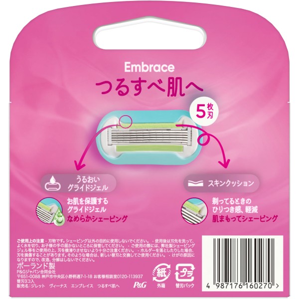 질레트 비너스 엠브레이스 매끈피부로 교체날 교체날3개입 P&G재팬 > 여성용 교체날