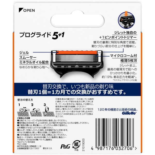 질레트 프로글라이드 매뉴얼 교체날8개 P&G재팬