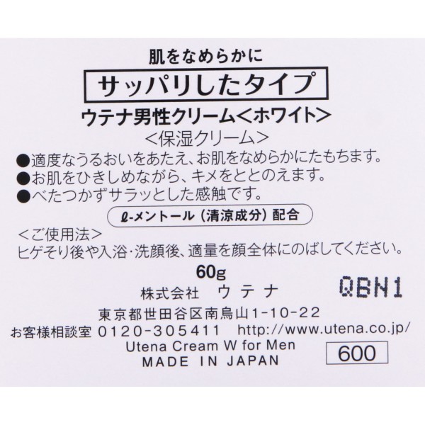 남성크림 산뜻 화이트 60g 우테나 > 스킨케어