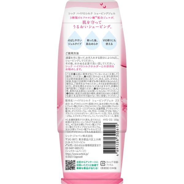 하이드로실크쉐이빙젤 150g 쉬크 재팬 > 면도제