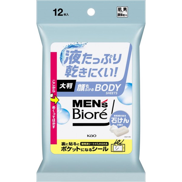 맨즈비오레 얼굴닦기만 해도 되는 바디 시트 청결감 있는 비누 향 포켓이 되는 스티커 부착 12매 카오 > 보디 페이퍼