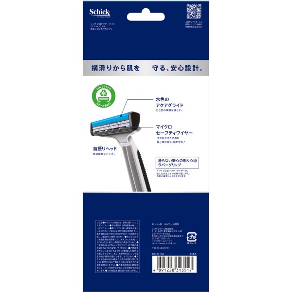 マイクロセーフティワイヤーが肌に刃があたるのを最小に抑え、不意の横滑りから肌を守る切れ味長持ち、肌にやさしい。