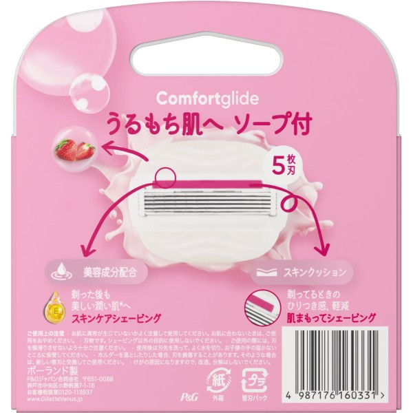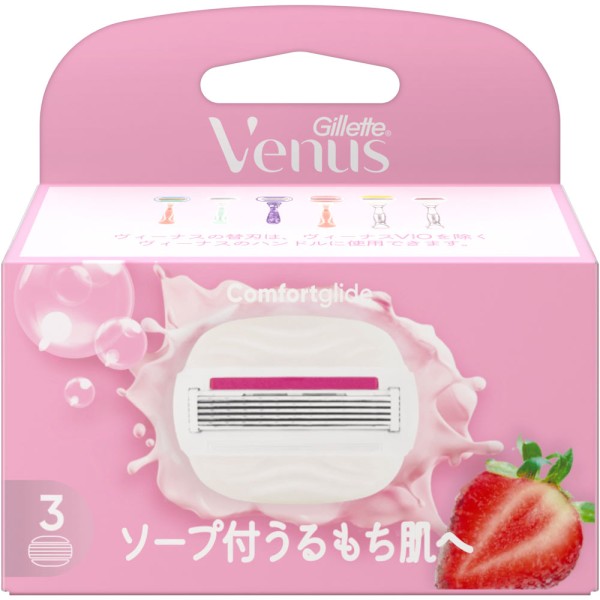 질레트 비너스 컴포트 글라이드 촉촉 탱탱피부로 딸기밭 향 소프포함 교체날 교체날3개입 P&G재팬 > 여성용 교체날