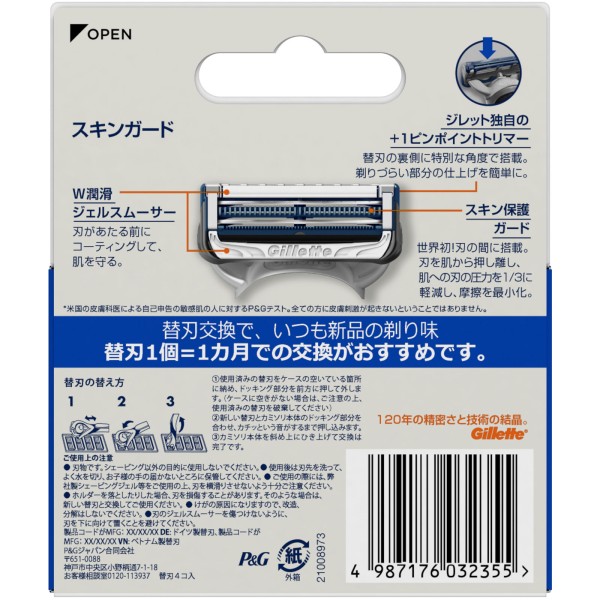 질레트 스킨가드 매뉴얼 교체날4개입 P&G재팬 > 남성용 교체날