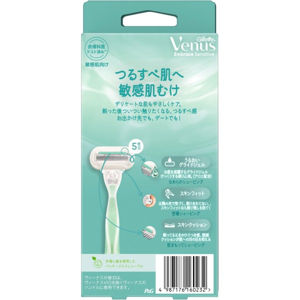 질레트 비너스 엠브레이스 센서티브 민감피부에 적합한 매끈피부로 여성용 면도기 본체 교체날2상점함 P&G재팬 > 여성용 홀더