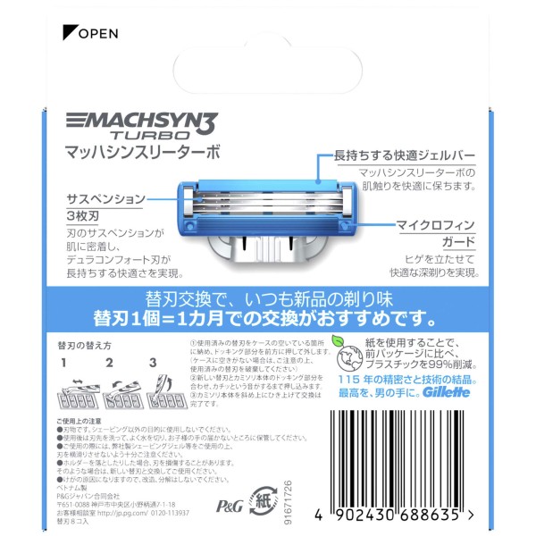 질레트 마하 씬 스리 터보 교체날8개 P&G재팬 > 남성용 교체날