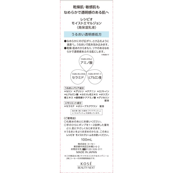 레시피오 모이스트에멀젼 100mL > 페이스 케어