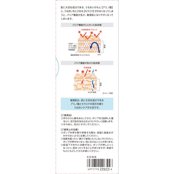 ●きめ細かく濃密な泡で肌を包み込み、うるおいをまもりながら汚れを負担感なく落とします。みずみずしく透明感のある肌にします。