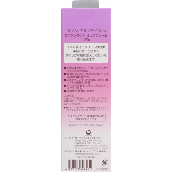 미노온 아미노 모이스트 에이징 케어 밀크크림 100g 다이이치산쿄 헬스케어 > 페이스 케어