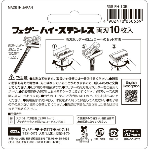 하이 스테인리스 양날 10매 페더 안전면도 > 남성용 교체날