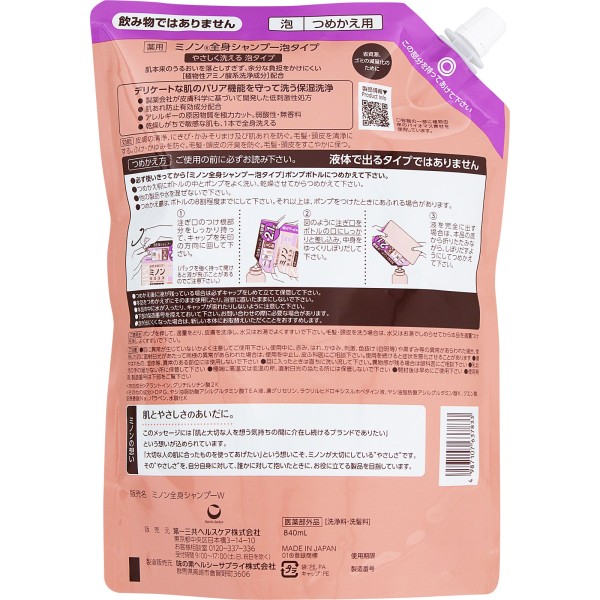 미노온전신샴푸거품 타입 리필840ml 다이이치산쿄 헬스케어 > 보디 케어