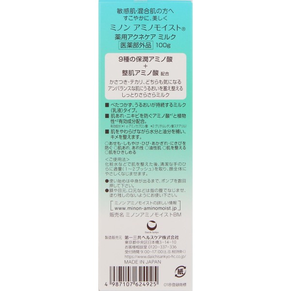 미노온 아미노모이스트 약용아크네 케어 밀크 100g 다이이치산쿄 헬스케어