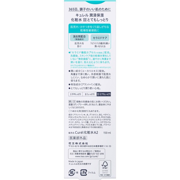 큐렐 화장수 III매우촉촉 150mL 카오 > 페이스 케어 보습