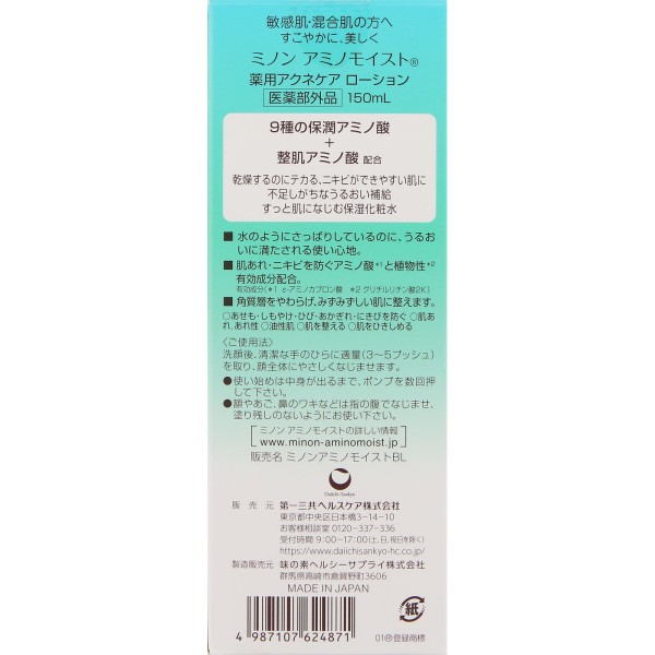 미노온 아미노모이스트 약용아크네 케어 로션 150ml 다이이치산쿄 헬스케어 > 페이스 케어