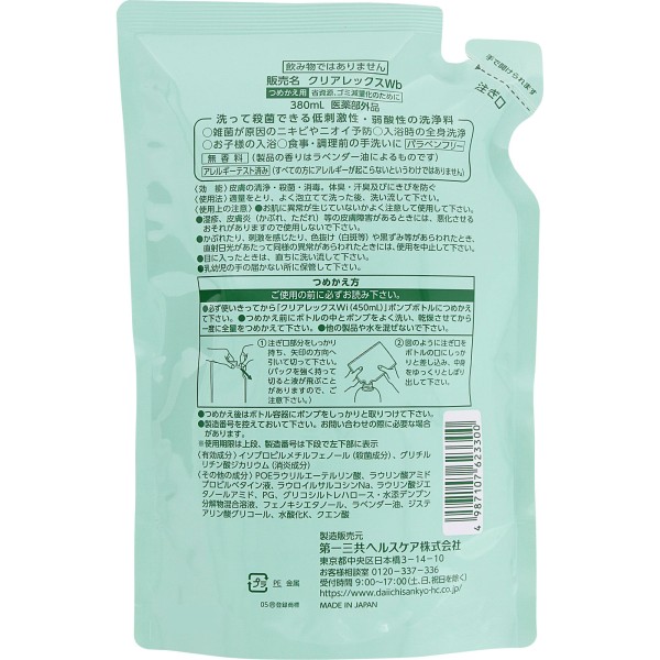 클리어렉스W리필 380ml 다이이치산쿄 헬스케어 > 보디 케어