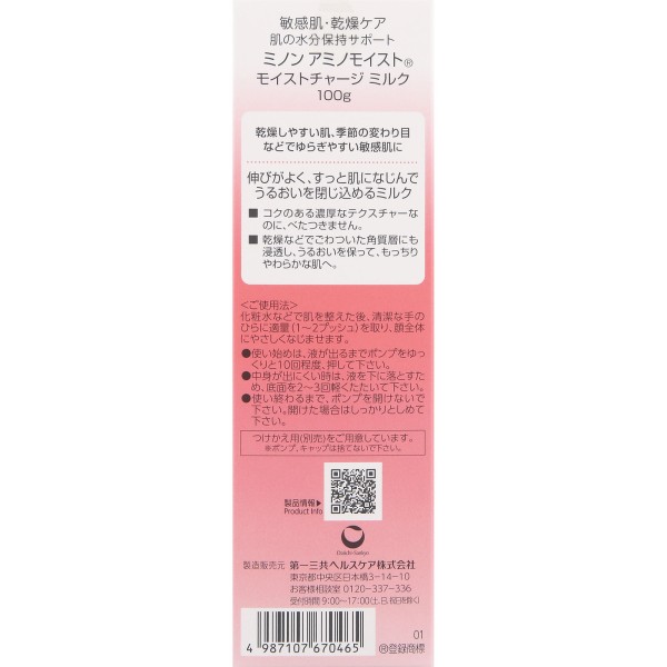 미노온 아미노 모이스트 모이스트차지 밀크 100g 다이이치산쿄 헬스케어 > 페이스 케어