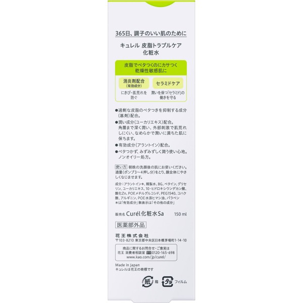 큐렐 피지트러블 케어 화장수 150mL 카오 > 페이스 케어 피지 트러블