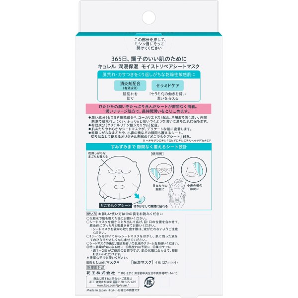 큐렐 윤침 보습 모이스트 리페어시트마스크 4매 카오 > 페이스 케어 보습
