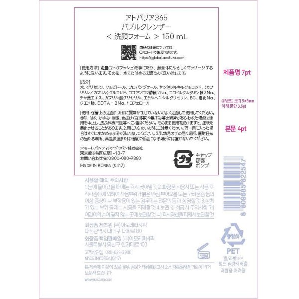 에스트라 아토배리어 365 버블 클렌저 150ml 아모레퍼시픽재팬 > 페이스 케어