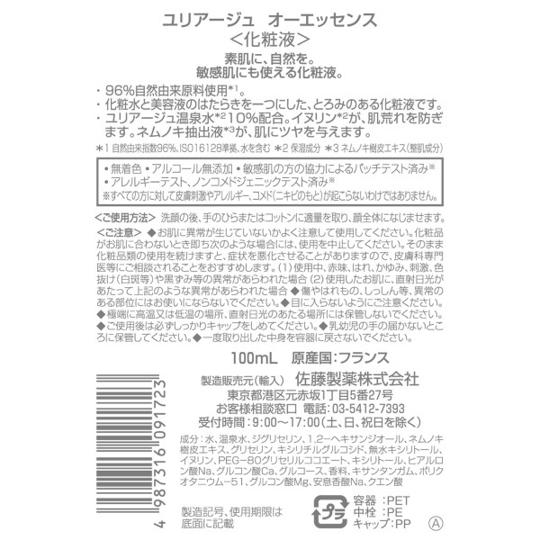 유리아쥬 오 에센스 100ml 사토제약 > 페이스 케어