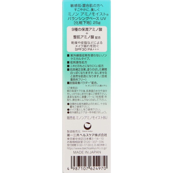 미노온 아미노모이스트 밸런싱 베이스UV 25g 다이이치산쿄 헬스케어 > 페이스 케어