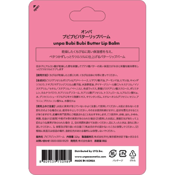 unpa 부비부비 버터 립밤 3.8G > 보습
