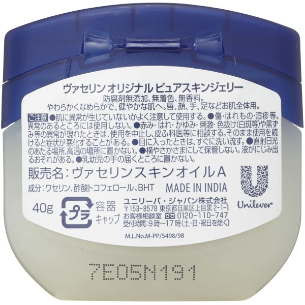 바셀린 오리지널 퓨어스킨 젤리 40G 유니레버 재팬