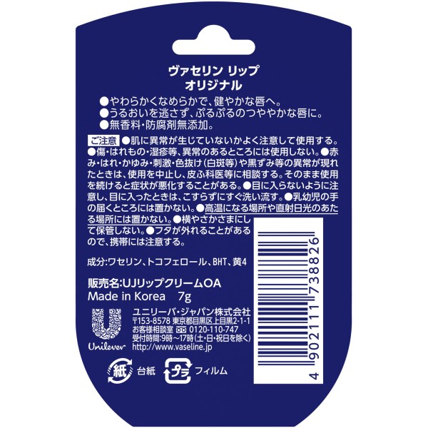 바셀린 립오리지널 7G 유니레버 재팬 > 베이직