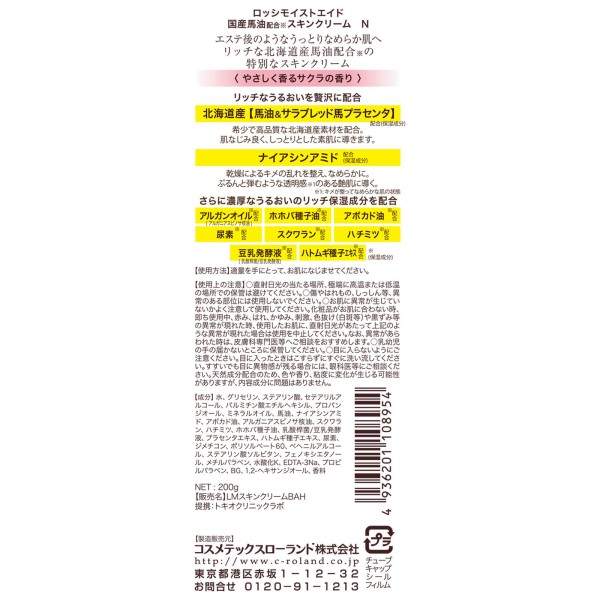 厳選された国産こうね馬油と北海道サラブレッドプラセンタを配合した高保湿スキンクリーム。ほんのりやさしく香るサクラの香り。