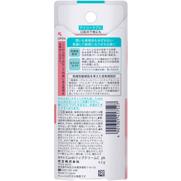 큐렐 립케어 크림 발색핑크 4.2g 카오 > 컬러