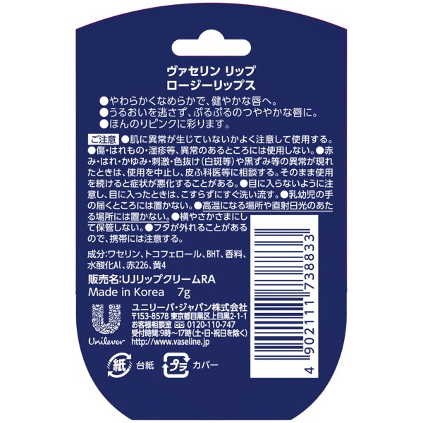 바세린 립로지립스 7g 유니레버재팬 > 베이직