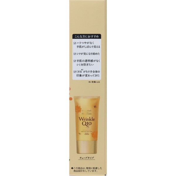 コクのあるクリームがとろけて濃厚なうるおいを与える、コエンザイムQ10配合のプレミアムなハンドクリーム。シワ改善とシミ予防の美白効果が認められた有効成分ナイアシンアミド配合。ふっくらとしたハリつやを与え、透明感のある手肌へ。金木犀の香り。
