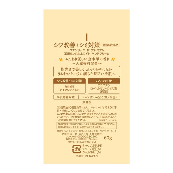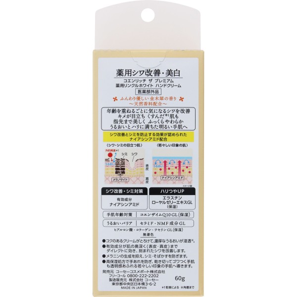 코엔리치 더 프리미엄 약용링클화이트 핸드크림 킨모쿠세이향 60g 코세 코스메포트 > 일반