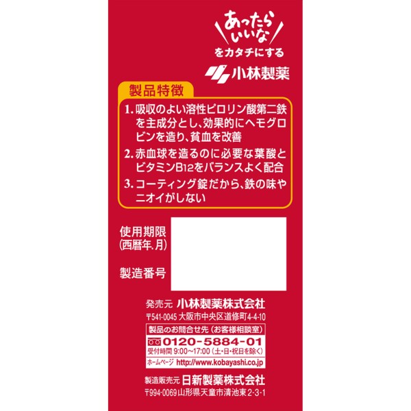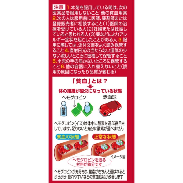1.吸収のよい溶性ピロリン酸第二鉄を主成分とし、効果的にヘモグロビンを造り、貧血を改善