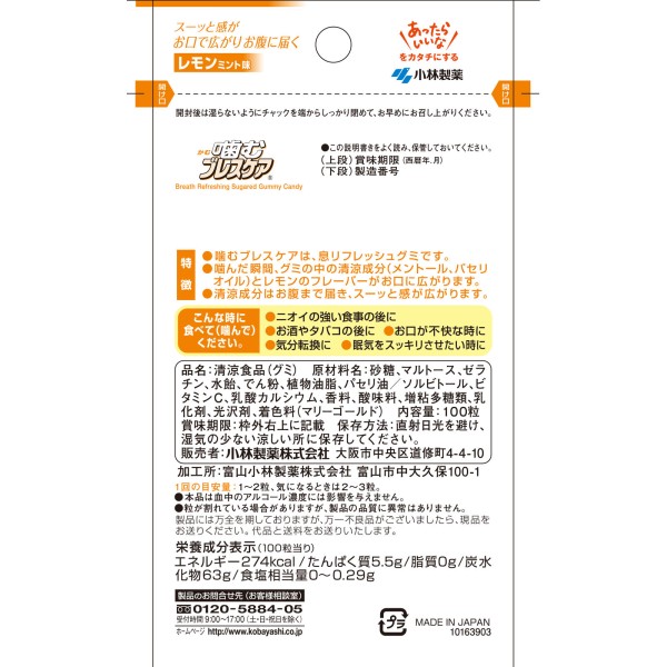 씹는 브레스케어 레몬민트 100정 고바야시제약 > 구강 청량 캡슐·정