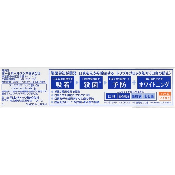 브레스라보 멀티+미백케어 마일드민트 90g 다이이치산쿄 헬스케어 > 미백