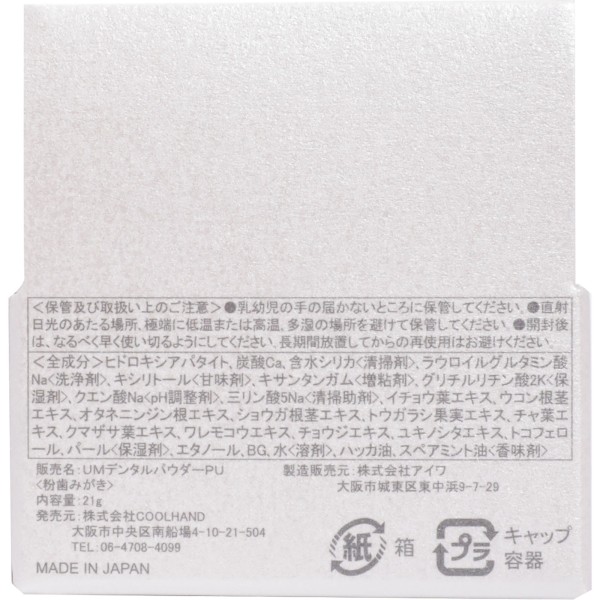 ●天然ヒドロキシアパタイトを高濃度60%配合したパウダータイプの歯みがきです。