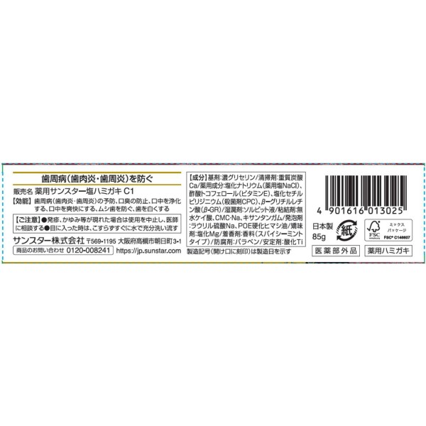 약용소금 치약 스파이시 민트타입 85g 썬스타 > 치주병