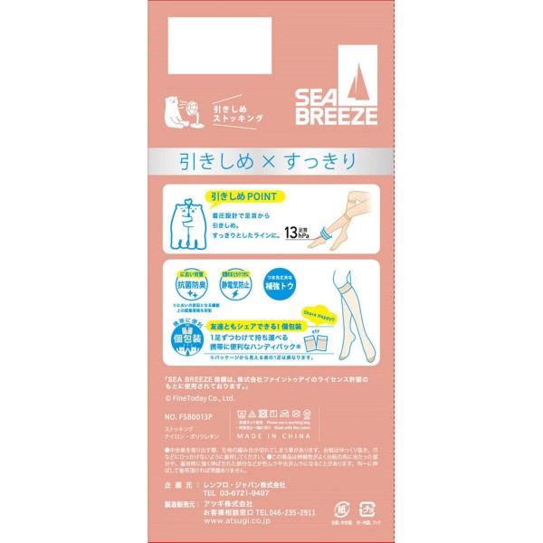 씨브리즈 산뜻한 DRY 압박 무릎아래 시어-BE 아츠기 > 스타킹 무지 숏 스타킹