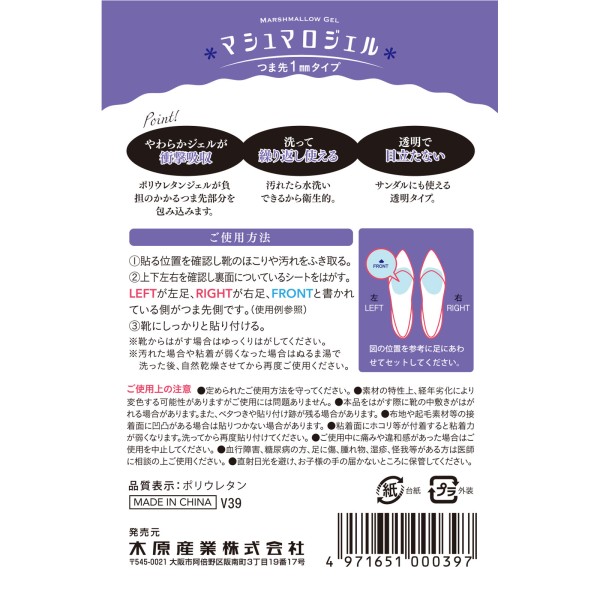 마쉬멜로우 젤 발끝 1mm 타입 발끝용 기하라 산업 > 젤