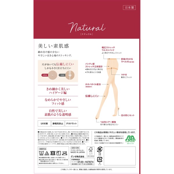 美しい透明感と丈夫で伝線しにくさをアップしたサブリナナチュラルストッキング