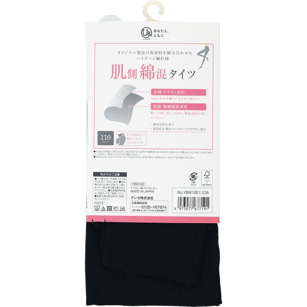 肌側にやさしい極細面の使用と毛玉になりぬくくムレにくい110デニールタイツ