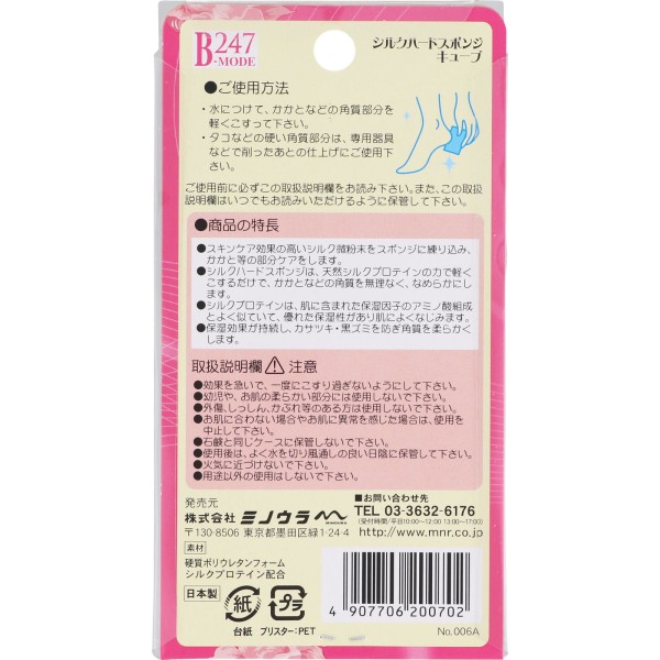 247B-MODEシルクハードスポンジキューブは主にかかとの乾燥によるダメージケアを目的としたシルクの軽石です。