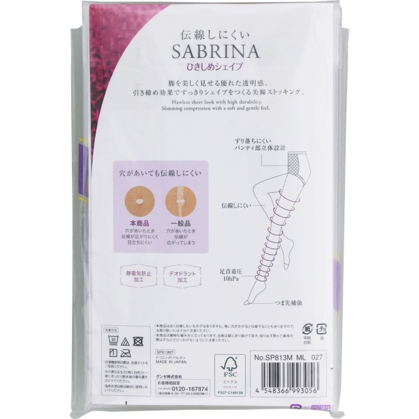 伝線しにくく、美しく引き締めるサブリナ3足組着圧ストッキング、デオドラント、静電気防止機能が付いて1P個装パッケージです。