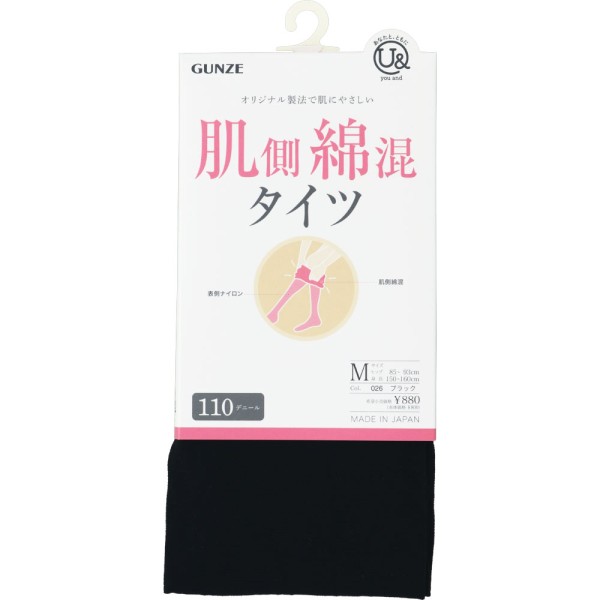 肌側にやさしい極細面の使用と毛玉になりぬくくムレにくい110デニールタイツ