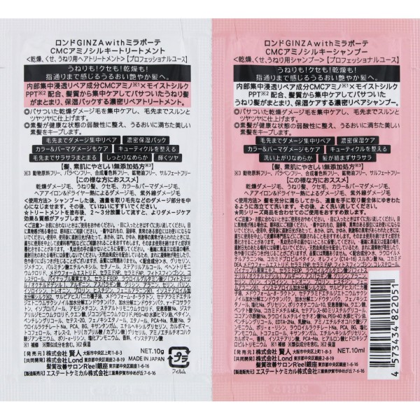 론도GINZA with 미라보테 CMC아미노 실키 샴푸&트리트먼트 트라이얼 10ml+10g 켄진 > 기타