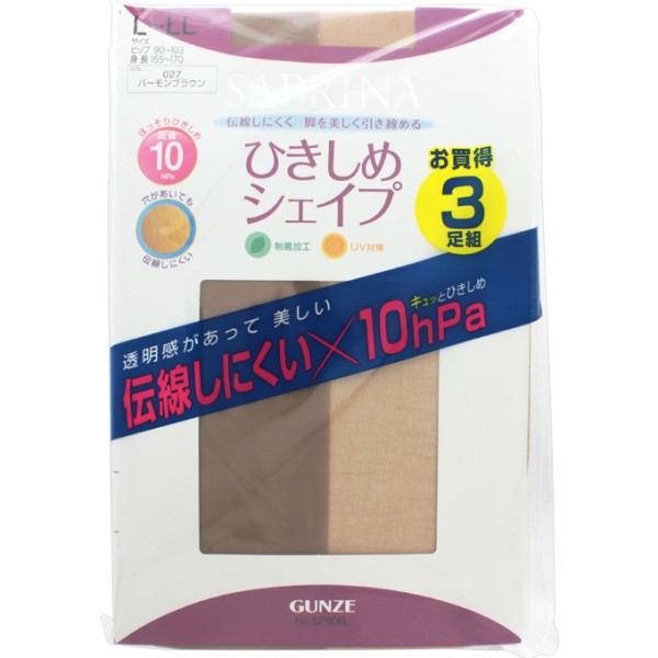 穴があいても伝線しにくく、透明感があって美しく脚を引き締めます。お買い得の3足組です。パンティ部は立体設計。制菌加工。UV対策として繊維に紫外線を吸収する成分を加工しています。