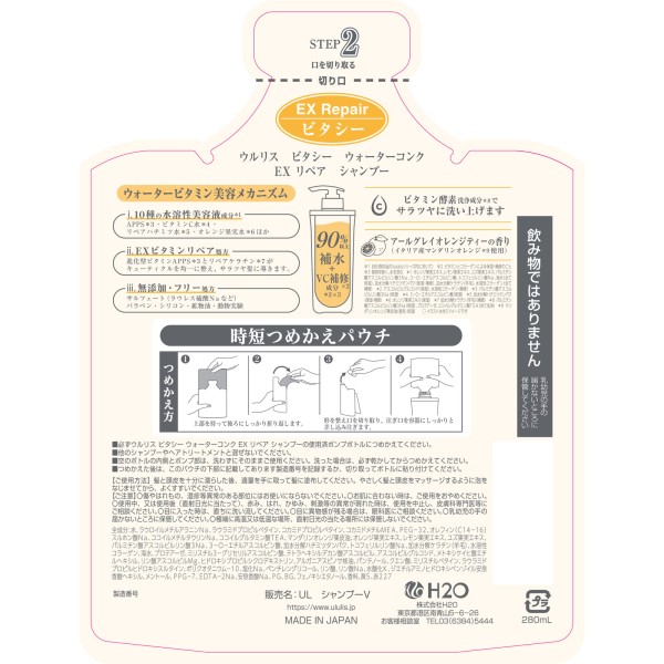 울리스 비타씨 워터 콘크 EX 리페어 샴푸 리필 280mL > 울리스