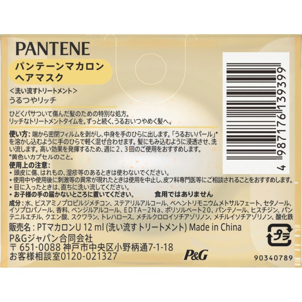 판텐 마카롱 헤어 마스크 탱탱 윤기 리치 트라이얼 12ml > 팬틴 미라클즈