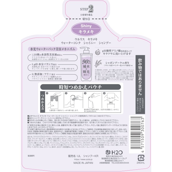 울리스 키라메키 워터 콘크 샤이니 샴푸 리필 280mL > 울리스